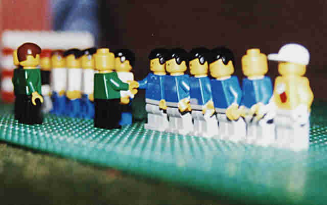 Am kleinen Bahnhof, der direkt gegenüber steht, haben sich einige Eisenbahnfreunde versammelt, um dem Spektakel beizuwohnen. Die Gunst der Stunde nutzt hiesiger Sportverein um ein Fussballspiel zu veranstalten. |